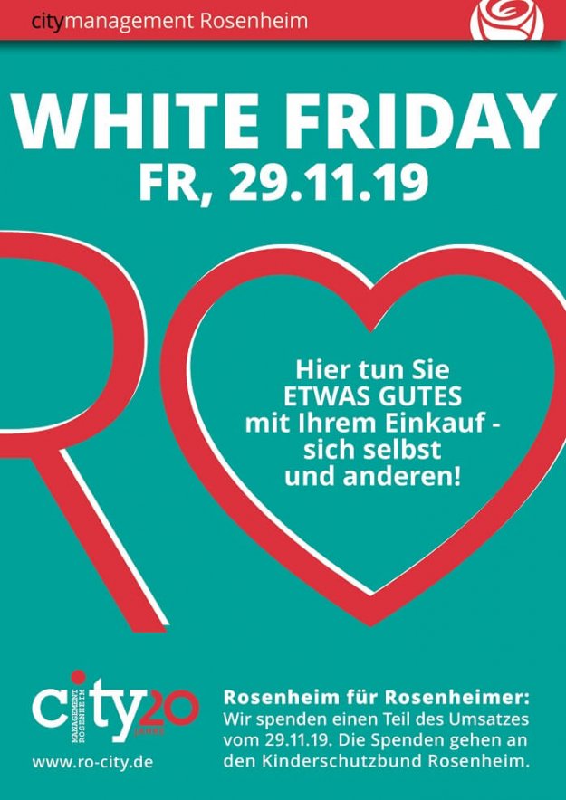 In Zeiten der Nachhaltigkeit soll mit dem WHITE FRIDAY ein positives Zeichen gesetzt werden, deshalb wollen das City-Management Rosenheim und einige seiner Mitglieder den Rabatttag Ende November nutzen und die…