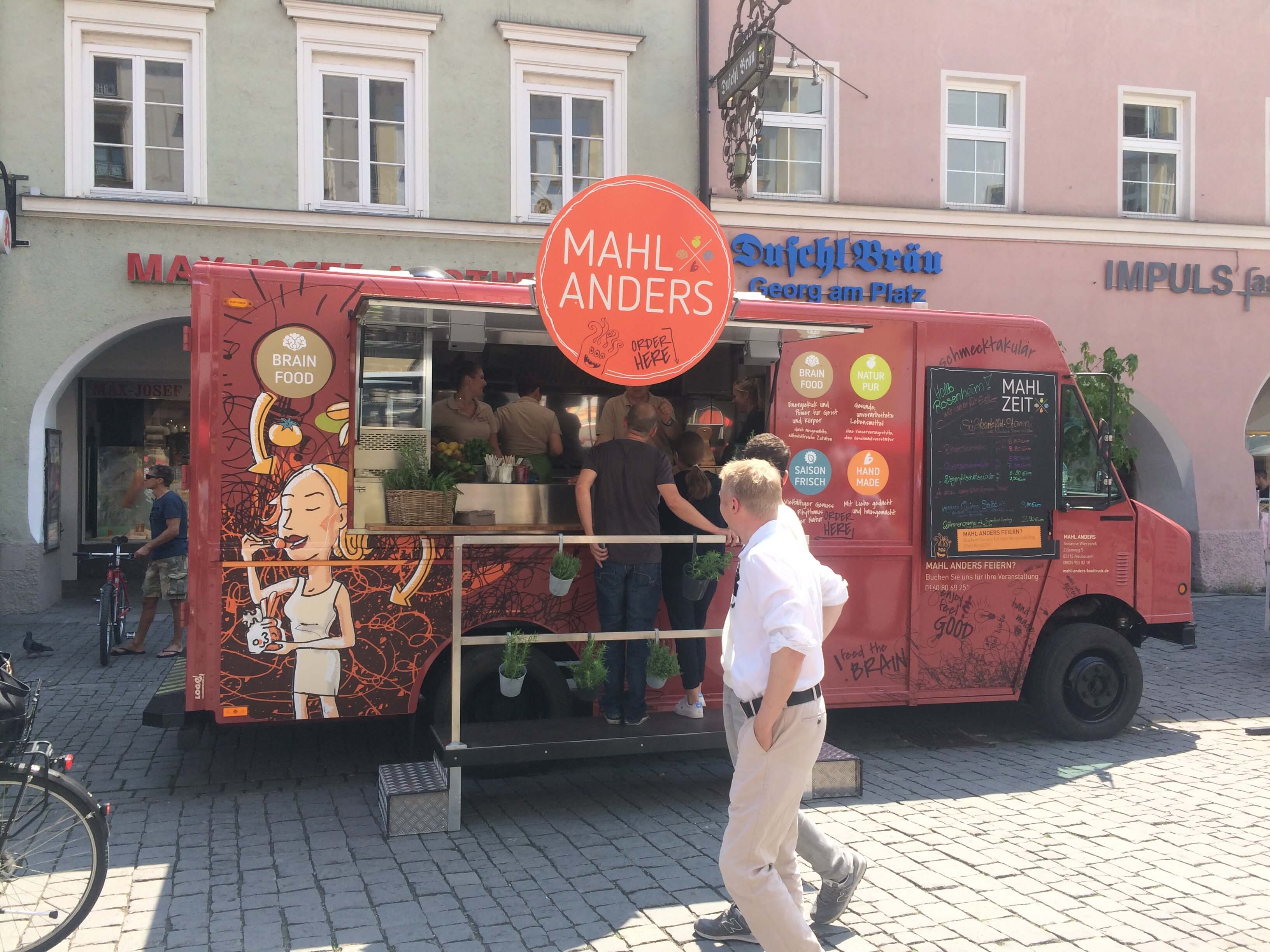 Dieses Jahr wurde das Angebot noch erweitert, um der Nachfrage besser Herr zu werden. Dennoch rissen an manchen Ständen die Schlangen nicht ab. Es hatte sich wohl aus dem letzten Jahr schon herumgesprochen, wo es die besten Köstlichkeiten gibt. Rund 40 Anbieter waren wieder angereist, um die Rosenheimer mit kulinarischen Leckerbissen zu verwöhnen. Wiggelz, Sumbusa oder Gói Cuón – der Kreativität der Köche waren wieder keine Grenzen gesetzt. Aber auch Klassiker wie Burger, Paella oder Kartoffelspiralen waren wieder mit dabei und Rosenfleckerl oder auch bayerische Tapas wurden von den einheimischen Anbietern präsentiert. Auch der neue Foodtruck „Mahl anders“, unlängst mit dem Gründerpreis der Stadt Rosenheim ausgezeichnet war mit von der Partie (siehe Foto).